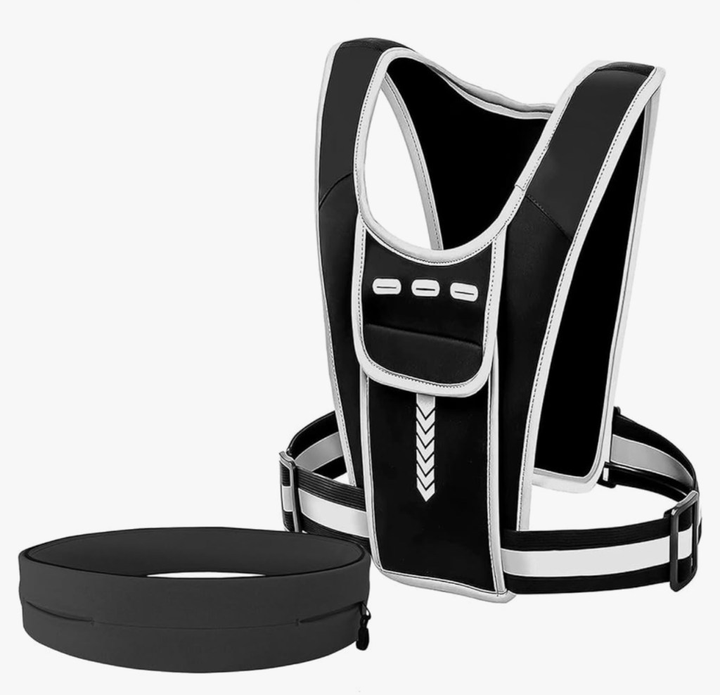 Running Waist Belt Bag and Hydration Vest, 1 Set, Black, Adjustable, Waterproof, Exercise, Gym, Essentials Items